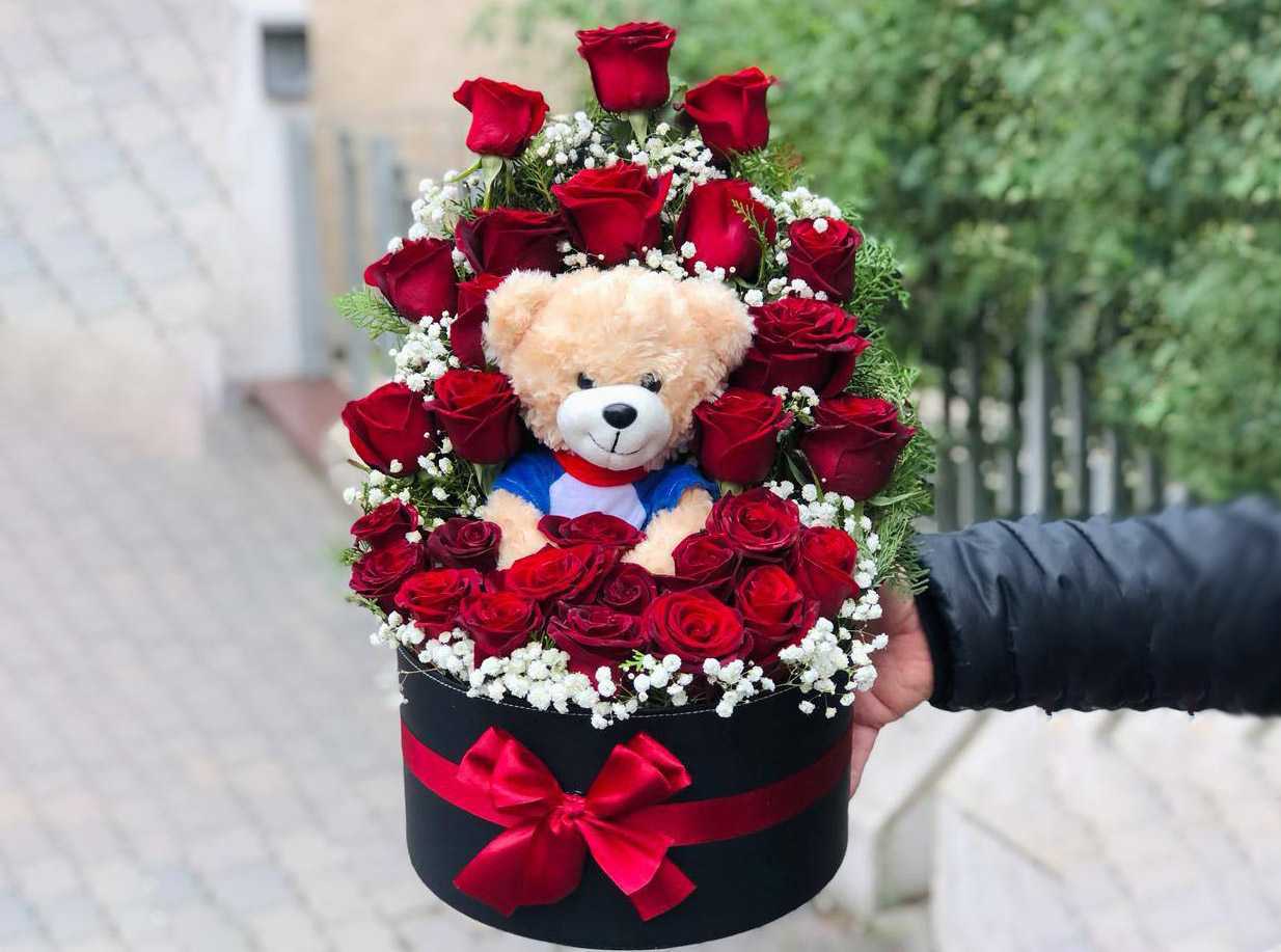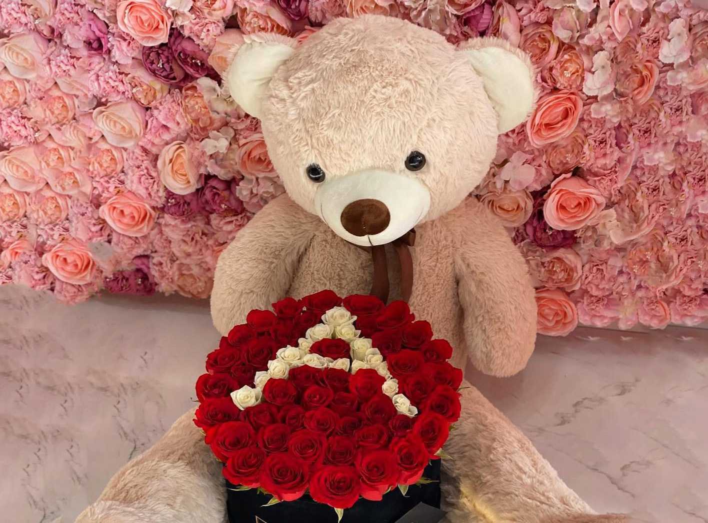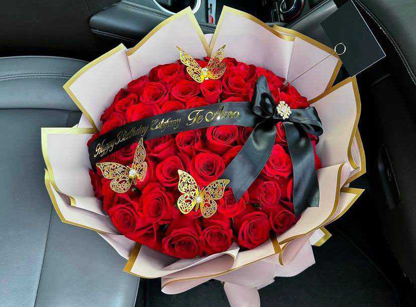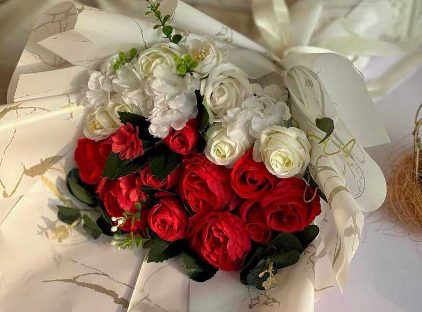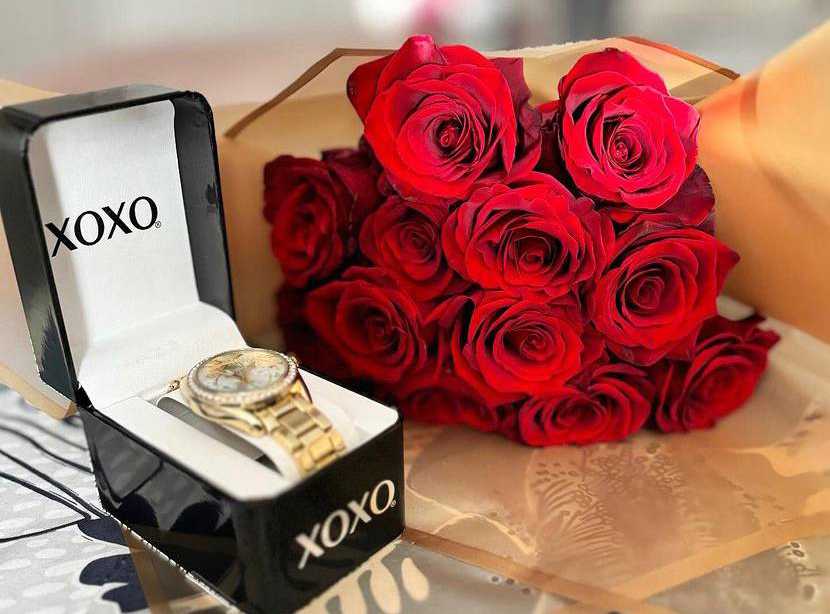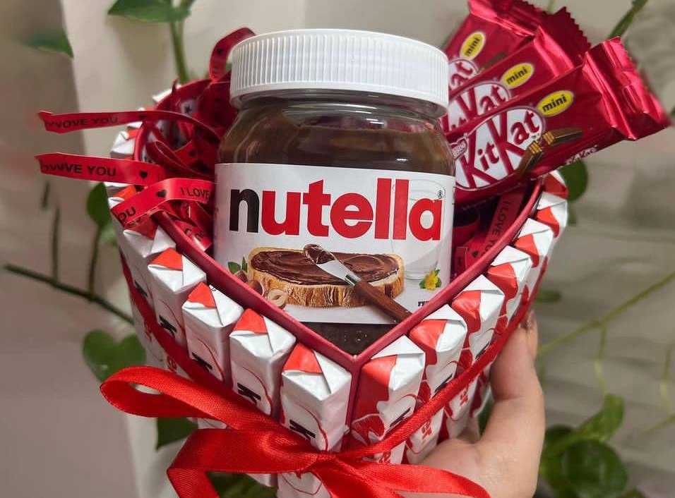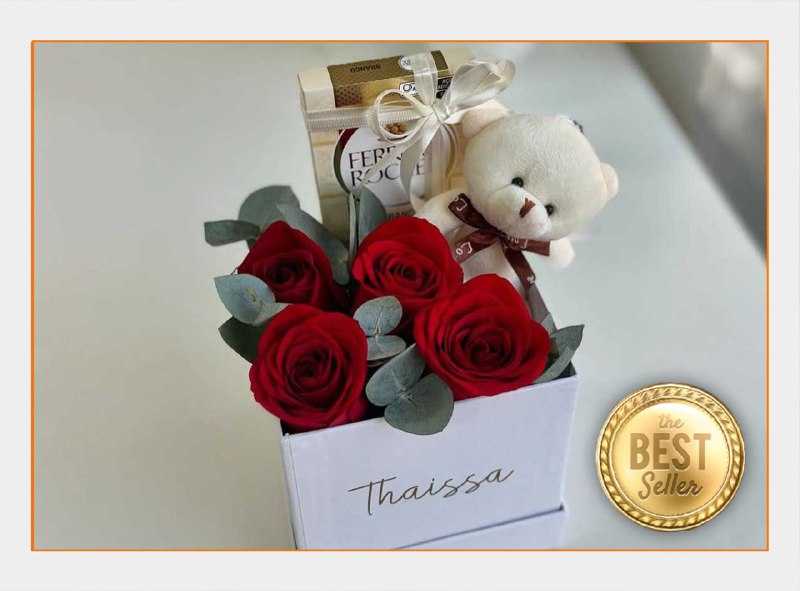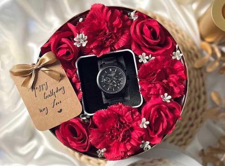 بوكس جلد اسود ( شكل قلب ) ورد جوري أحمر (25) شوكولا منوعة (10 قطع )
