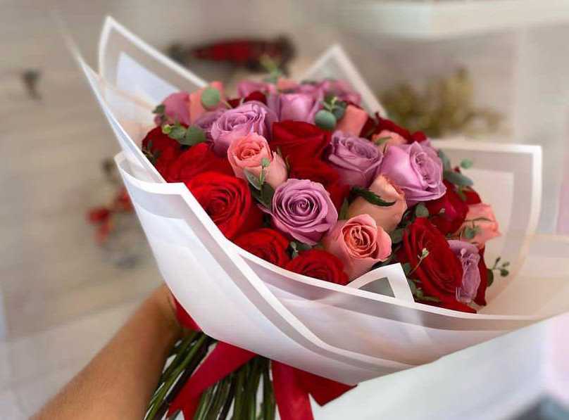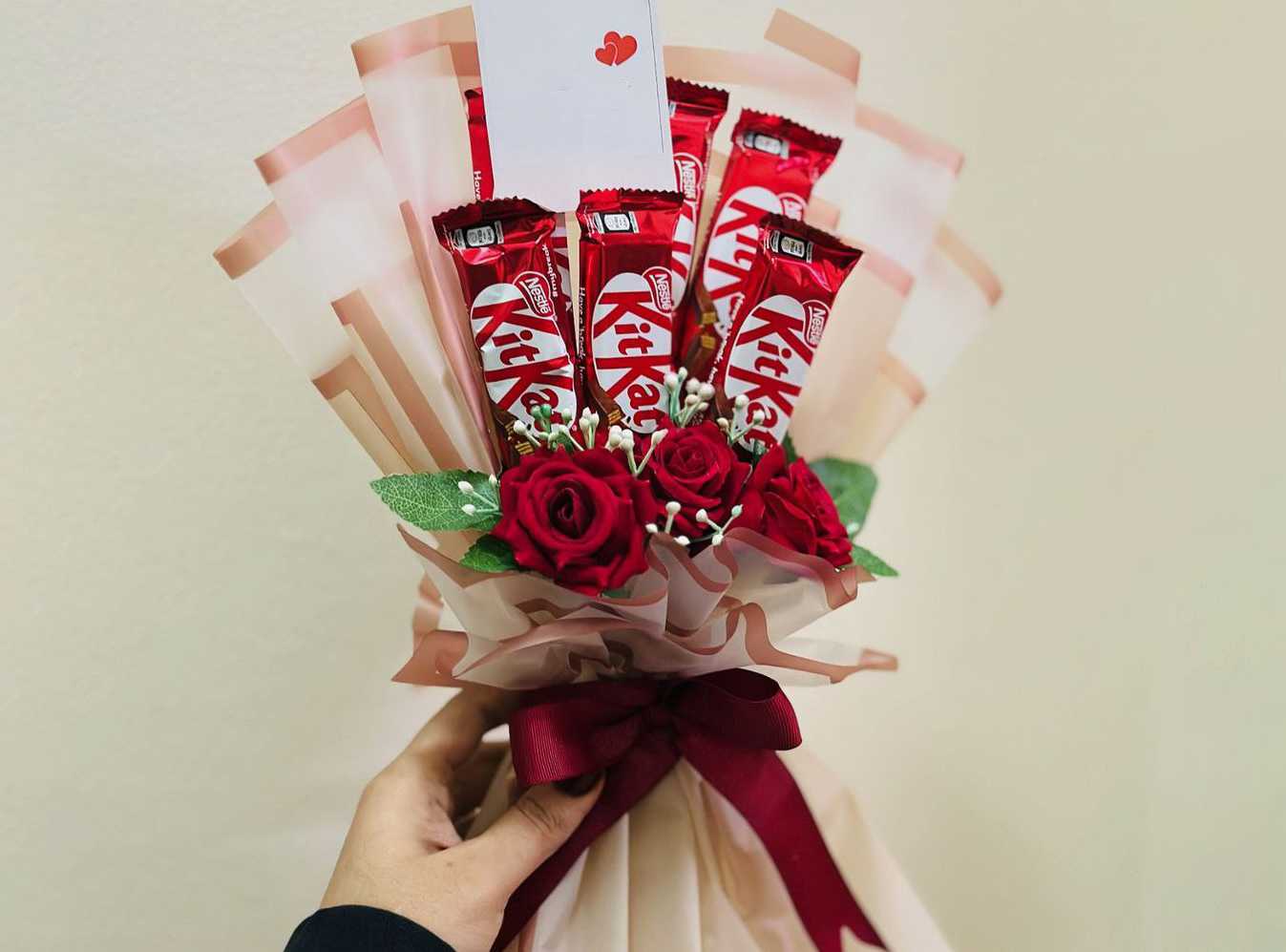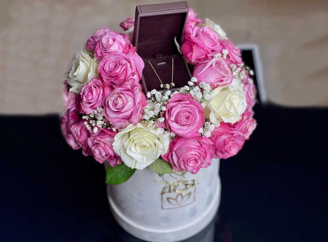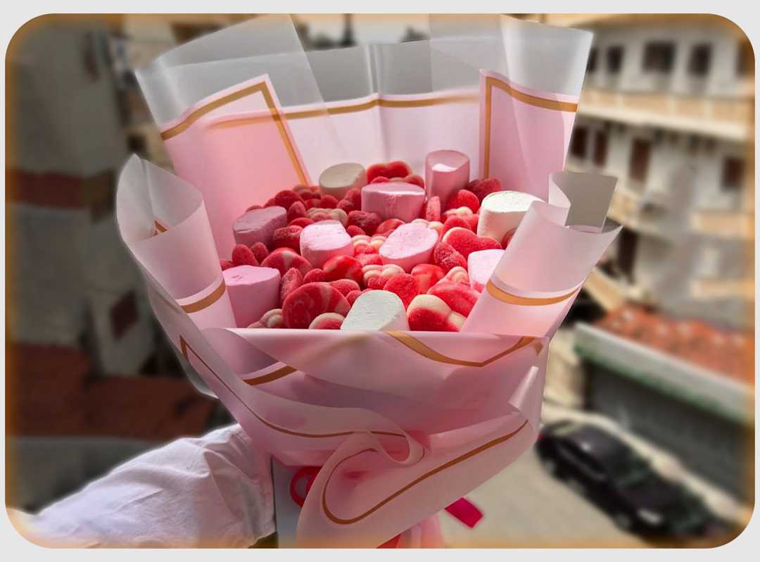 بوكس جلد اسود ( شكل قلب ) ورد جوري أحمر (25) شوكولا منوعة (10 قطع )