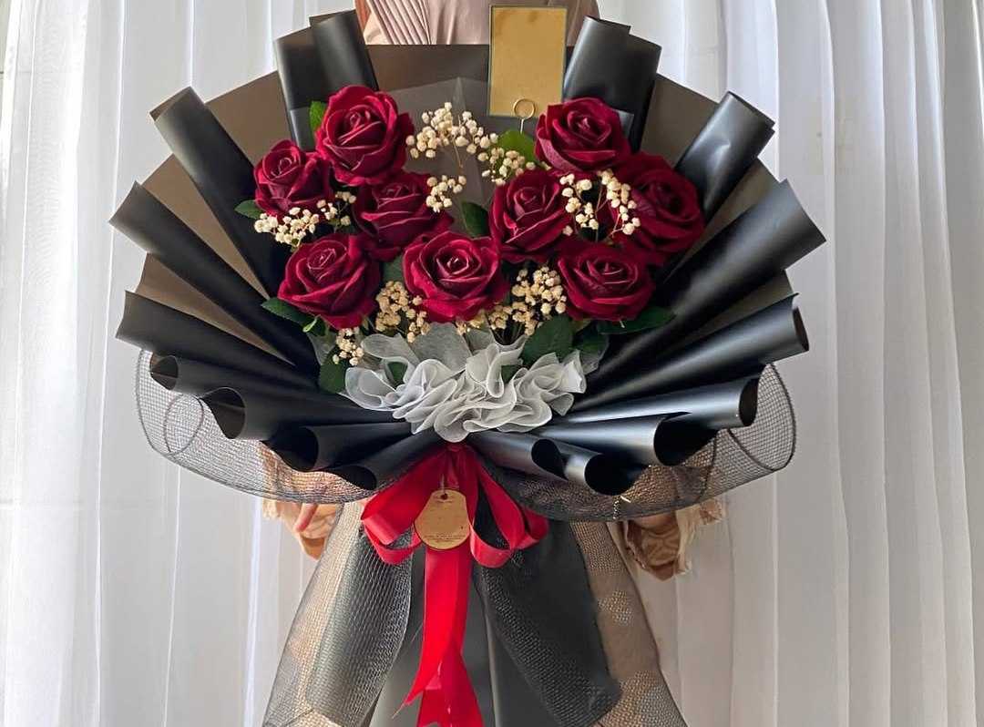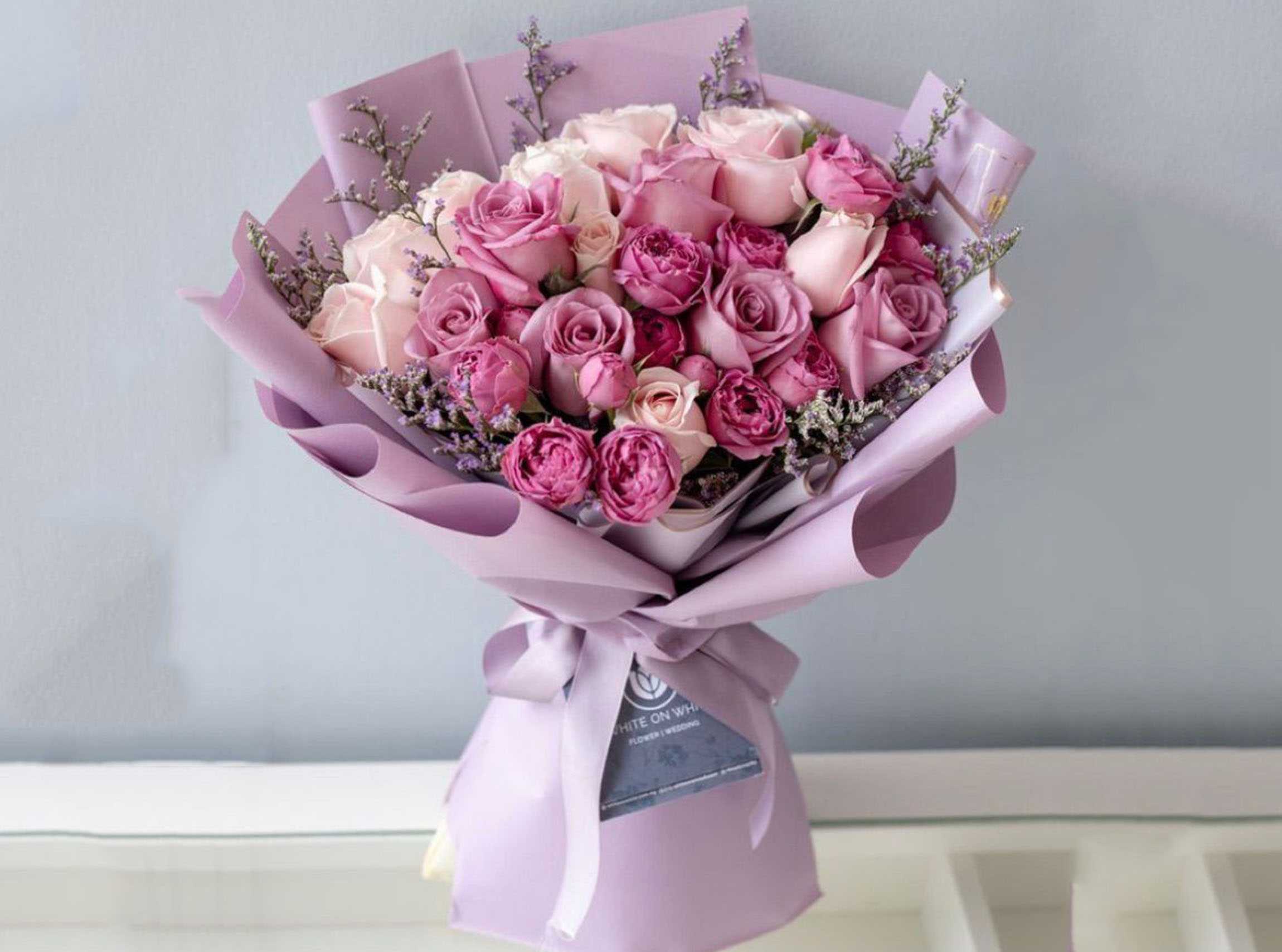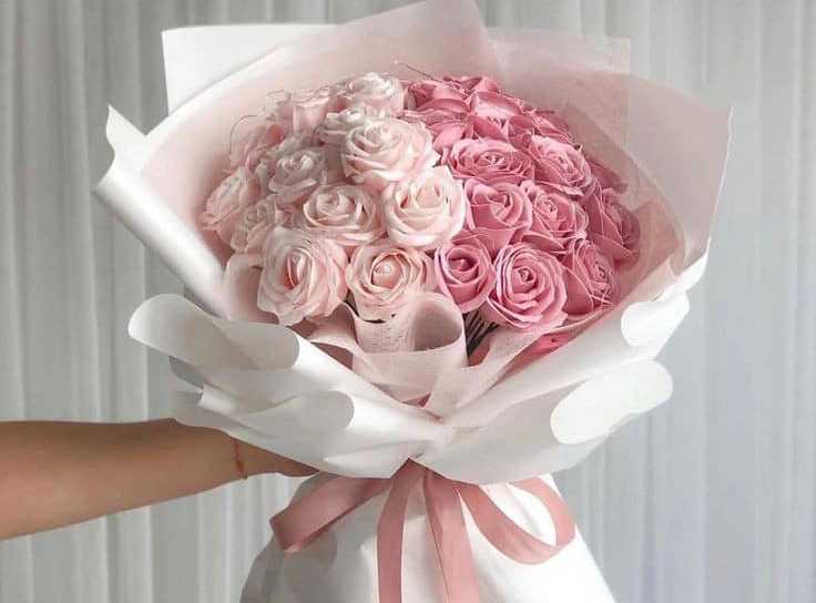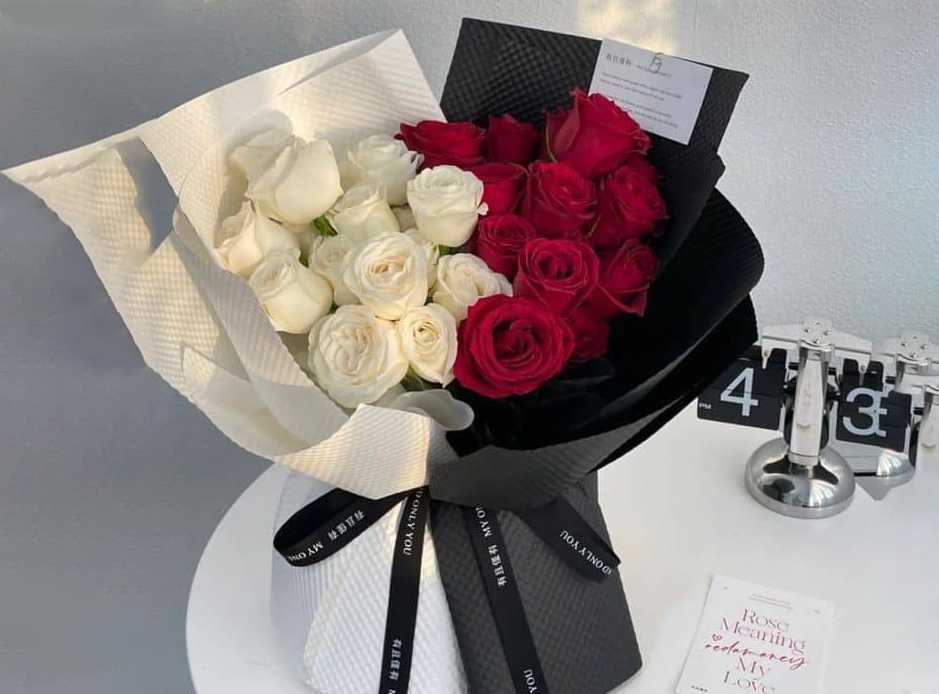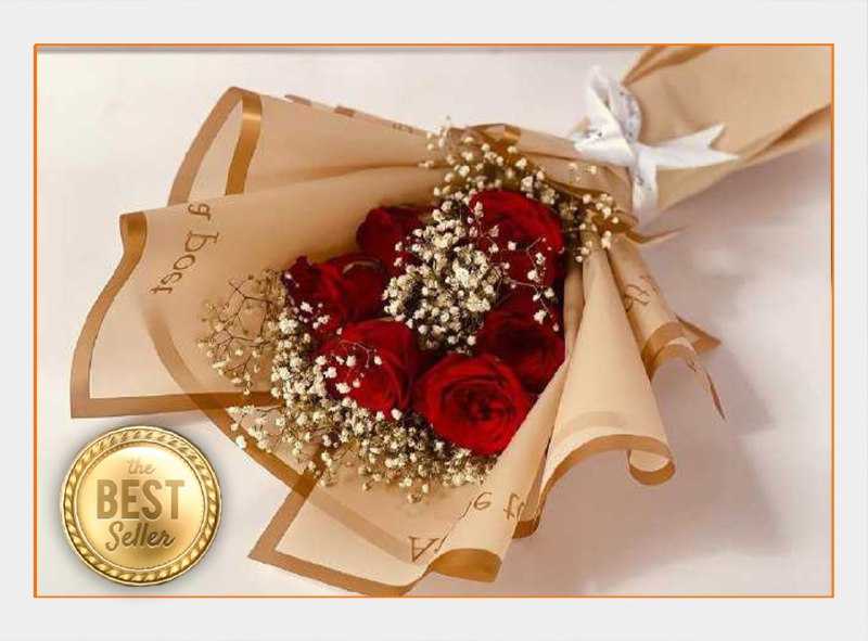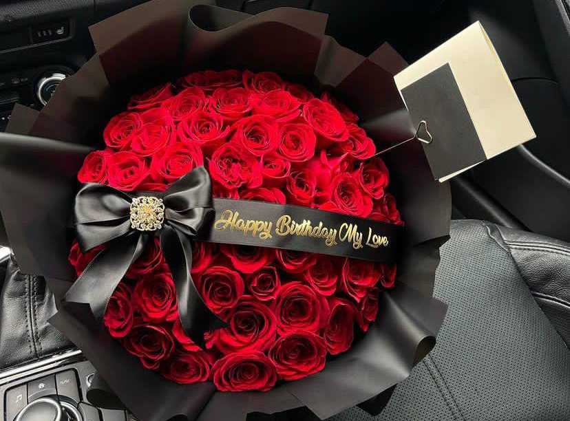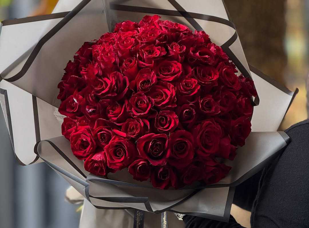 "باقة ورد جوري احمر 50 وردة تغليف لون ابيض"